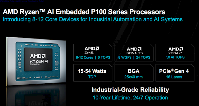 锐龙AI嵌入式P100系列处理器8-12核心版本,主要用来打造向工业自动化应用、可全天候运行的AI驱动型系统。